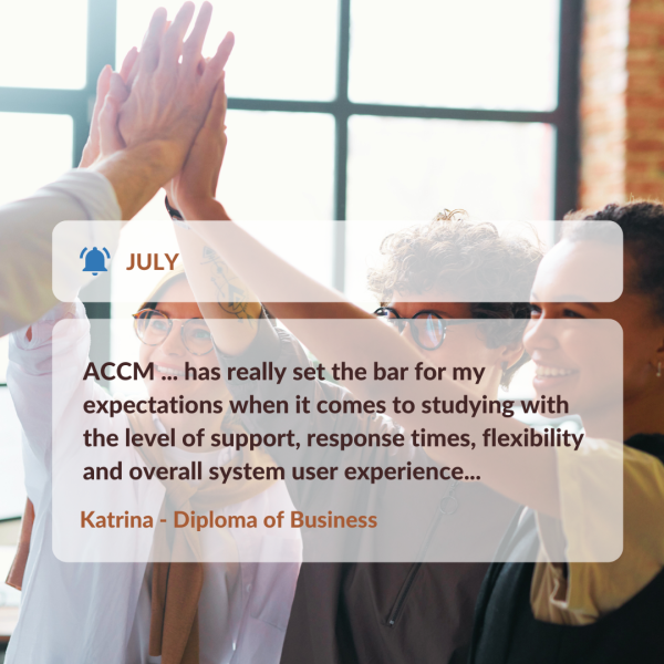 I have just completed my studies with ACCM and completed a Certificate IV in HR and just wanted to provide some feedback on my journey.